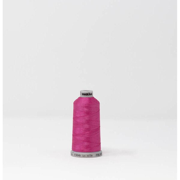 919-1635 • Madeira's 100% polyester machine embroidery thread, Polyneon, is constructed of a specifically developed raw material, eliminating looping, puckering and virtually all thread breaks. Suitable for almost any application, Polyneon's unique formula makes this thread extremely durable and smooth running for high-speed embroidery machines. Vibrant colors are glossy, as well as resistant to chlorine bleach. Polyneon is the ideal polyester machine thread for embroidering on uniforms, safety garments and commercial linens • #40 Weight • 1,100 Yards • Digitizing: Average 4.0 density • Recommended Needle: #65/9 or #75/11
