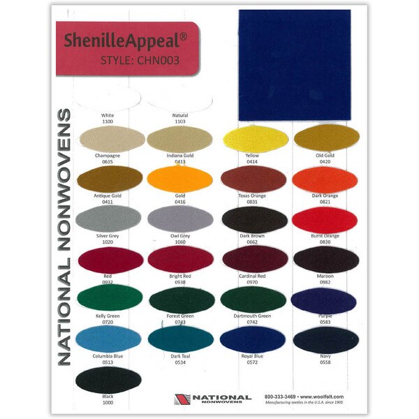 Scrim Felt Color Card • This color card contains samples of the 27 colors of scrim felt that we have to offer from National Nonwovens. Scrim Felt is made from 20% wool and 80% rayon.